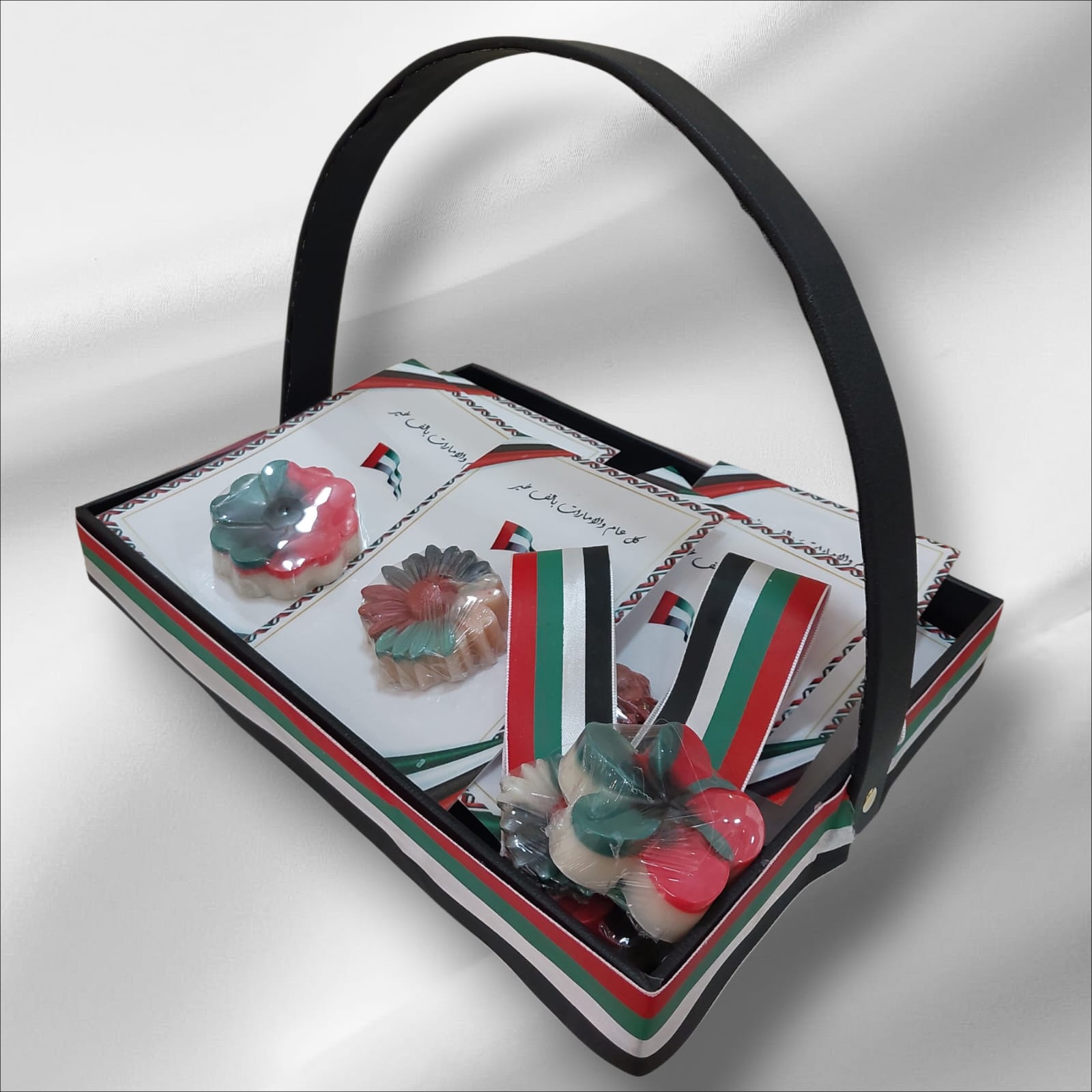 توزيعات من الصابون الطبيعي مناسبة لجميع انواع البشرة مزينة بالوان العلم مناسبة للتوزيعات والمناسبات