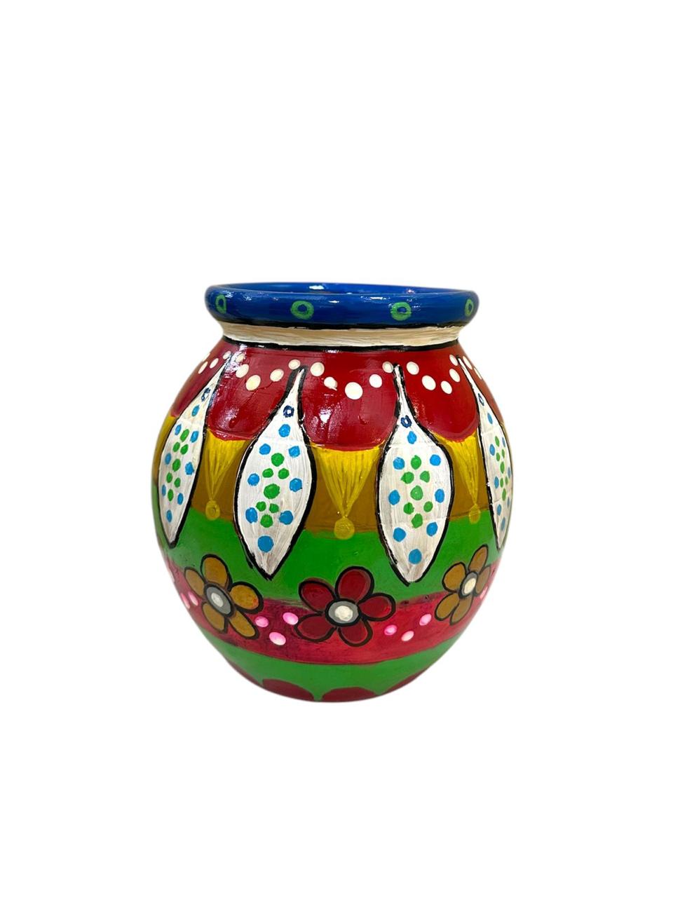 يمكن استخدام الجرة ليس فقط كقطعة ديكور، بل أيضاً لتخزين العناصر الصغيرة أو حتى كوعاء لزهورك المفضلة. إنها تضيف عنصرًا جماليًا في الحديقة أو على الرفوف داخل المنزل. كما تجعل الألوان الزاهية والجودة العالية من الفخار هذه الجرة مقاومة للزمن، حيث ستظل تحتفظ بجمالها لسنوات طويلة.