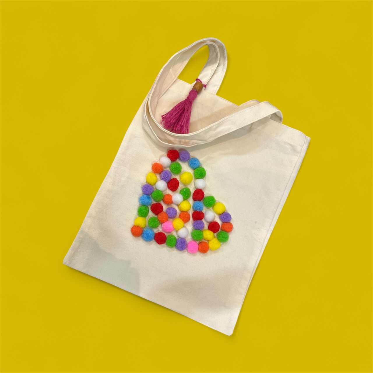 حقيبة من القماش القطني المتين مرسومة يدويا بقطع اسفنجية ملونة على شكل قلب -أنيقة ومناسبة للاستخدام اليومي