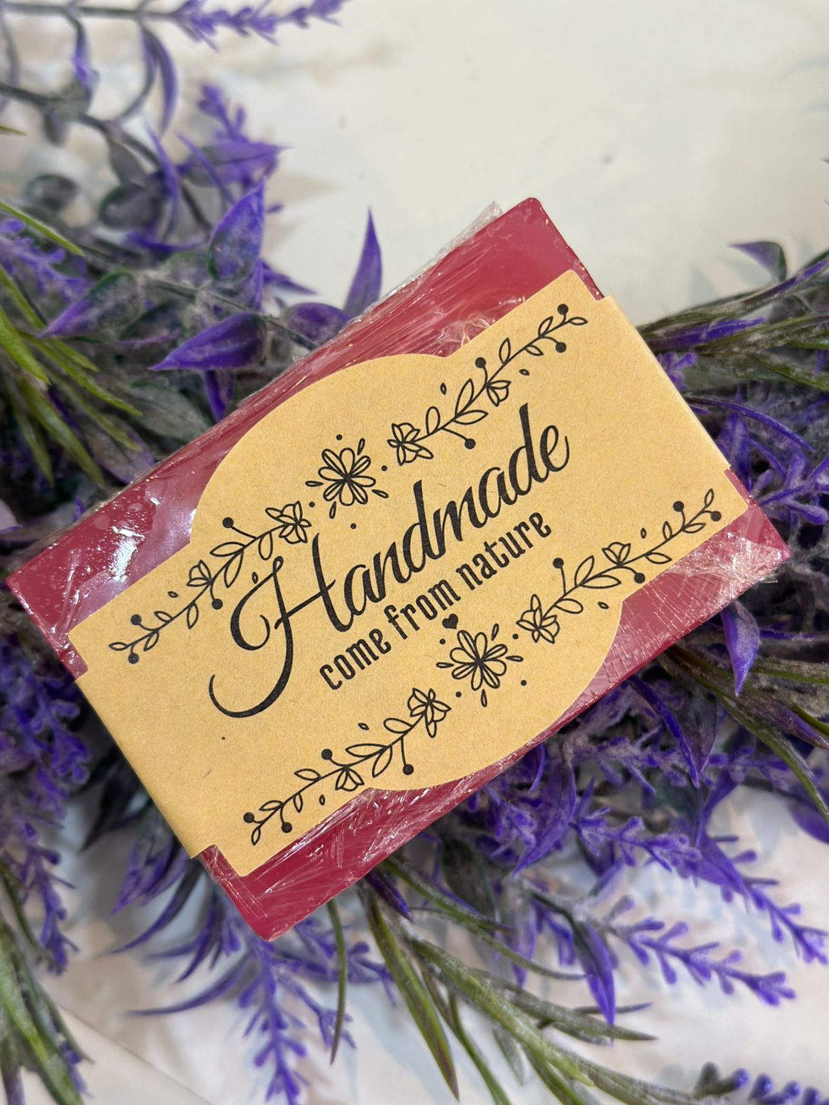 صابون طبيعي برائحة المسك مع الليف الطبيعي باللون الوردي- مناسب لجميع انواع البشرة