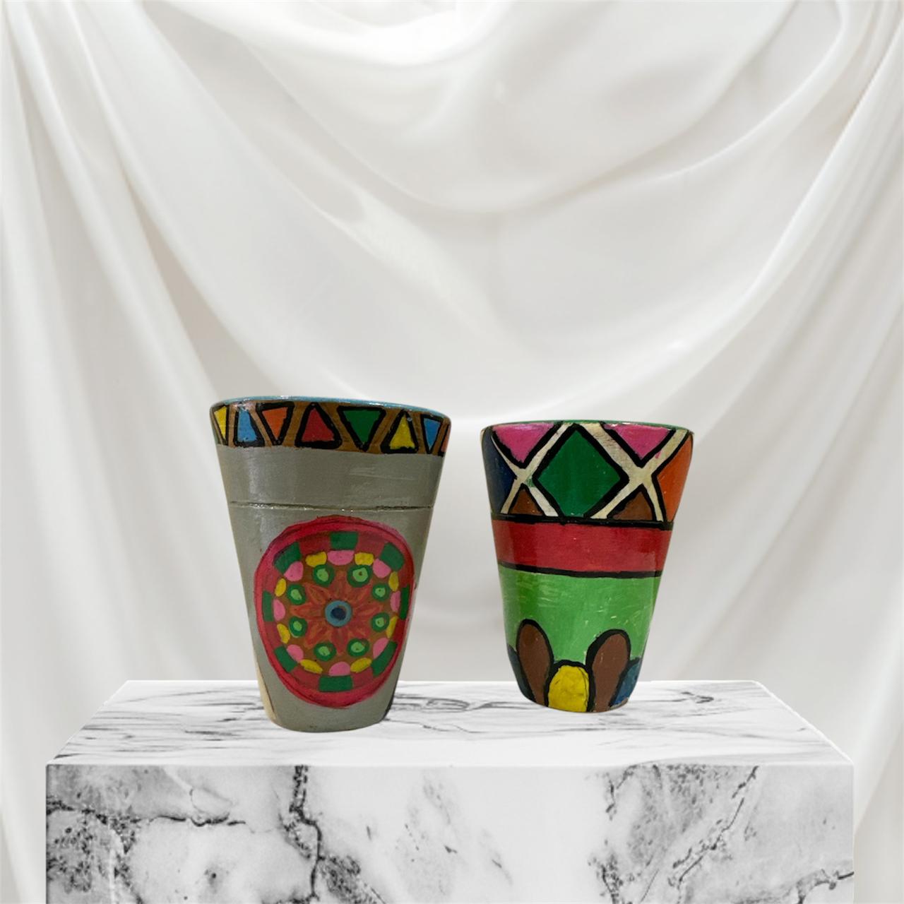 قطع فخارية من الطين الطبيعي ملونة يدويا- مزينة برسومات فريدة مناسبة للديكور